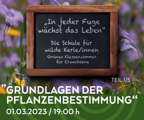 An 5 Abenden die heimische Wildpflanzenwelt (Blumen, Kräuter, Sträucher und Bäume) bestimmen, kennen und lieben lernen Wissen über Standorte, Lebensgemeinschaften, Ökologie, Brauchtum und vieles mehr erfahren